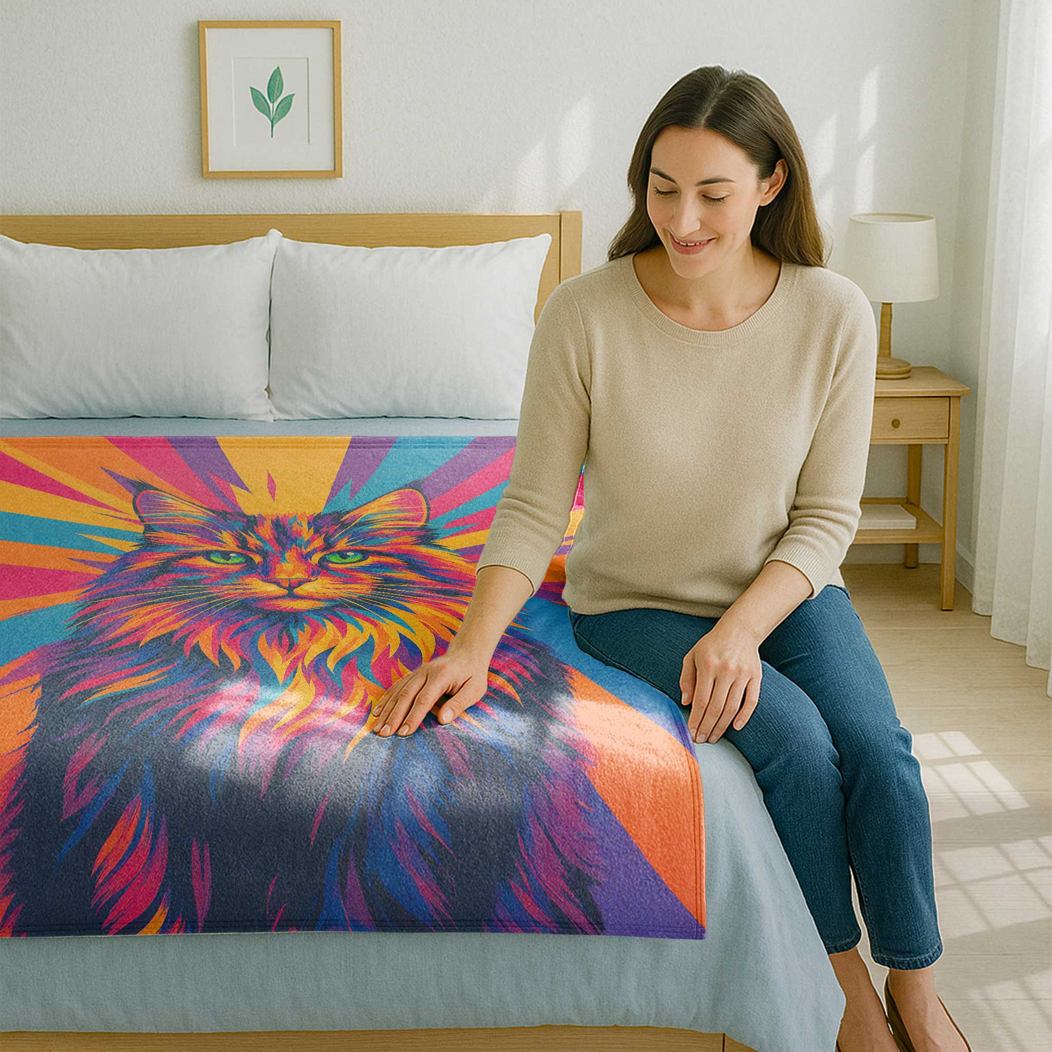 The blanket features neat edge stitching and a smooth surface that showcases custom designs in vivid, high-resolution detail. It’s durable, cozy, and made to last — all while bringing a personal touch to everyday life.