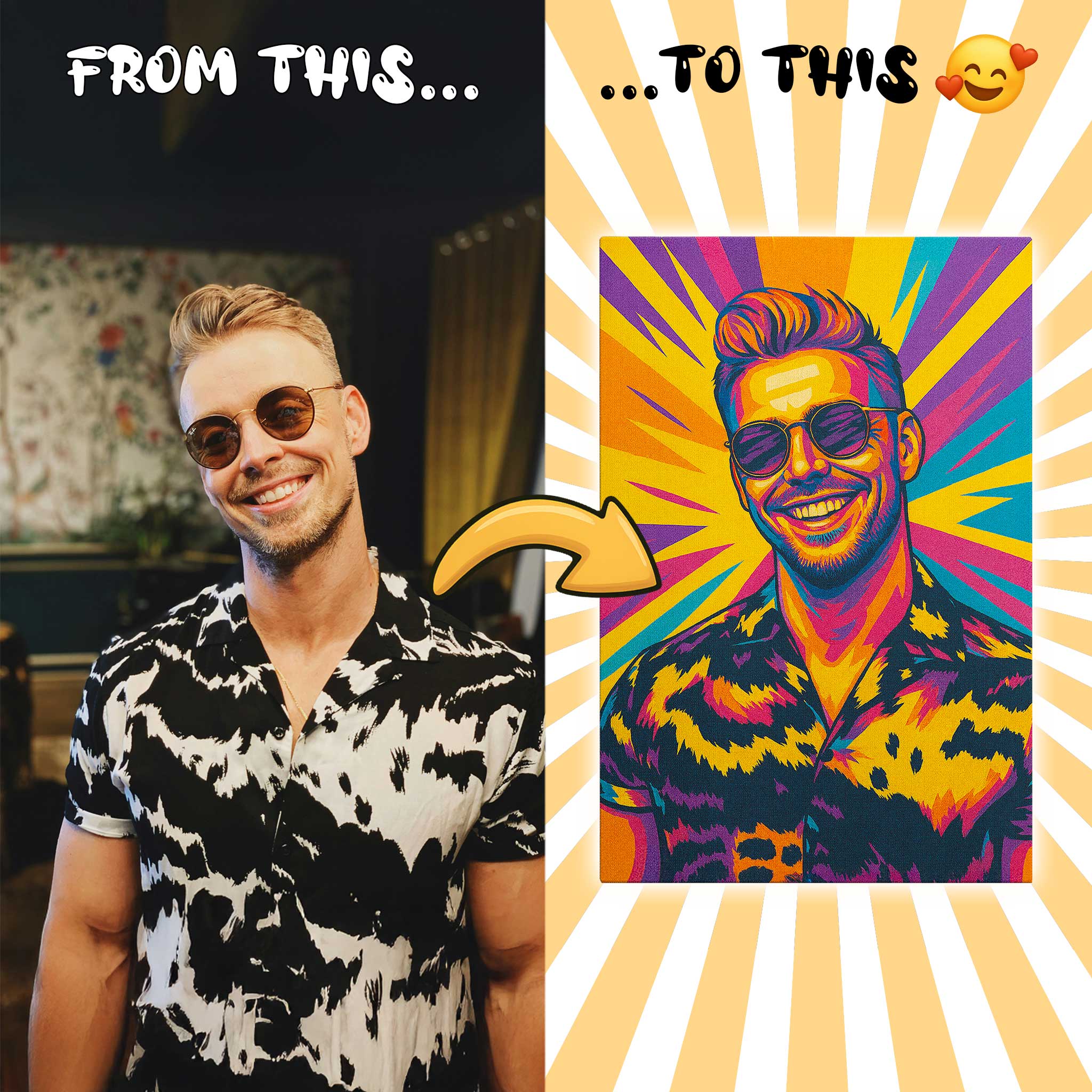 Simply upload your photo and choose your preferred art style. Our artists will transform your image into a personalized cartoon artwork printed on your selected product.